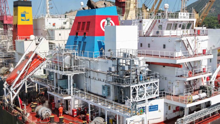 海德威科技集团(青岛)有限公司(Headway Technology Group)于周二(9 月 23 日)宣布,其突破性的船上碳捕集系统(OCCS)已在中国舟山市龙山船厂成功安装在 57,000 DWT 散货船“粤电 56”(Yue Dian 56)上。