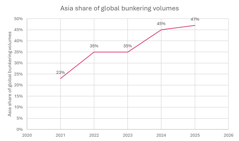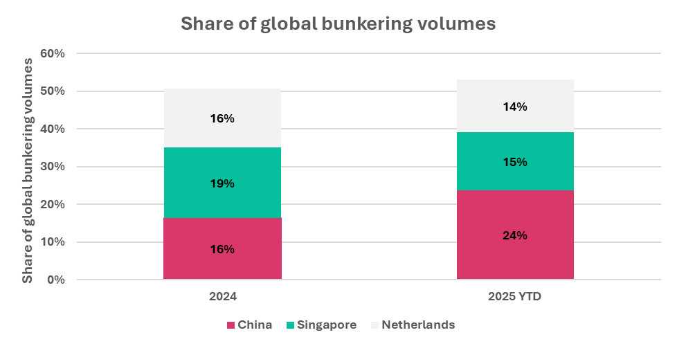 新加坡是2024年表现突出的增长型市场,但来到2025年,中国已成为主要增长动力,目前占全球液化天然气(LNG)总交付量的近四分之一。
