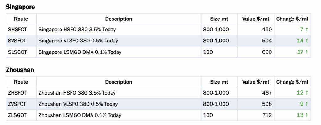 以下船用燃料报告由货运市场信息提供商波罗的海交易所( Baltic Exchange )供新加坡船燃资讯平台《满航》(Manifold Times)刊登: