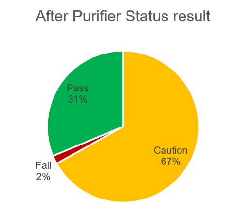 通过对VPS庞大的润滑油测试数据库进行审查,我们发现,经净化系统处理后的润滑油中,有超过三分之二的润滑油在净化后处于“警告”或“警示/不合格”状态。