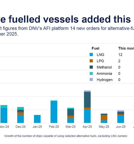 DNV:甲醇动力船订单趋势仍持续;10月份出现首批双燃料氨动力船新订单