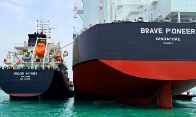 为开展首航,该船在新加坡加注了绿色甲醇,由Mitsu...