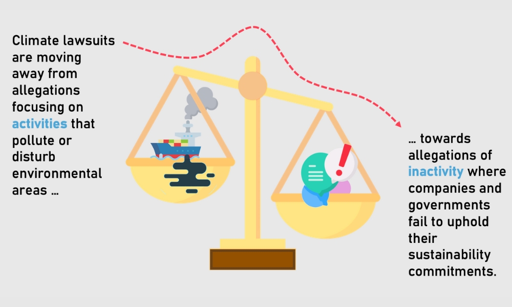 然而,请不要误会;这种与气候有关的诉讼并不新奇。我敢说,Erin Brockovich本人也会对这种说法感到反感。几十年来,环保团体和绿色和平等组织在多个国家发起法律战,捍卫和保护地球的生物多样性生态系统。新情况是,这些诉讼的重点不再是污染或破坏环境的活动(比如向海洋倾倒废物或向空气中排放有毒化学物质),而是公司和政府未能履行可持续发展承诺的不作为指控。