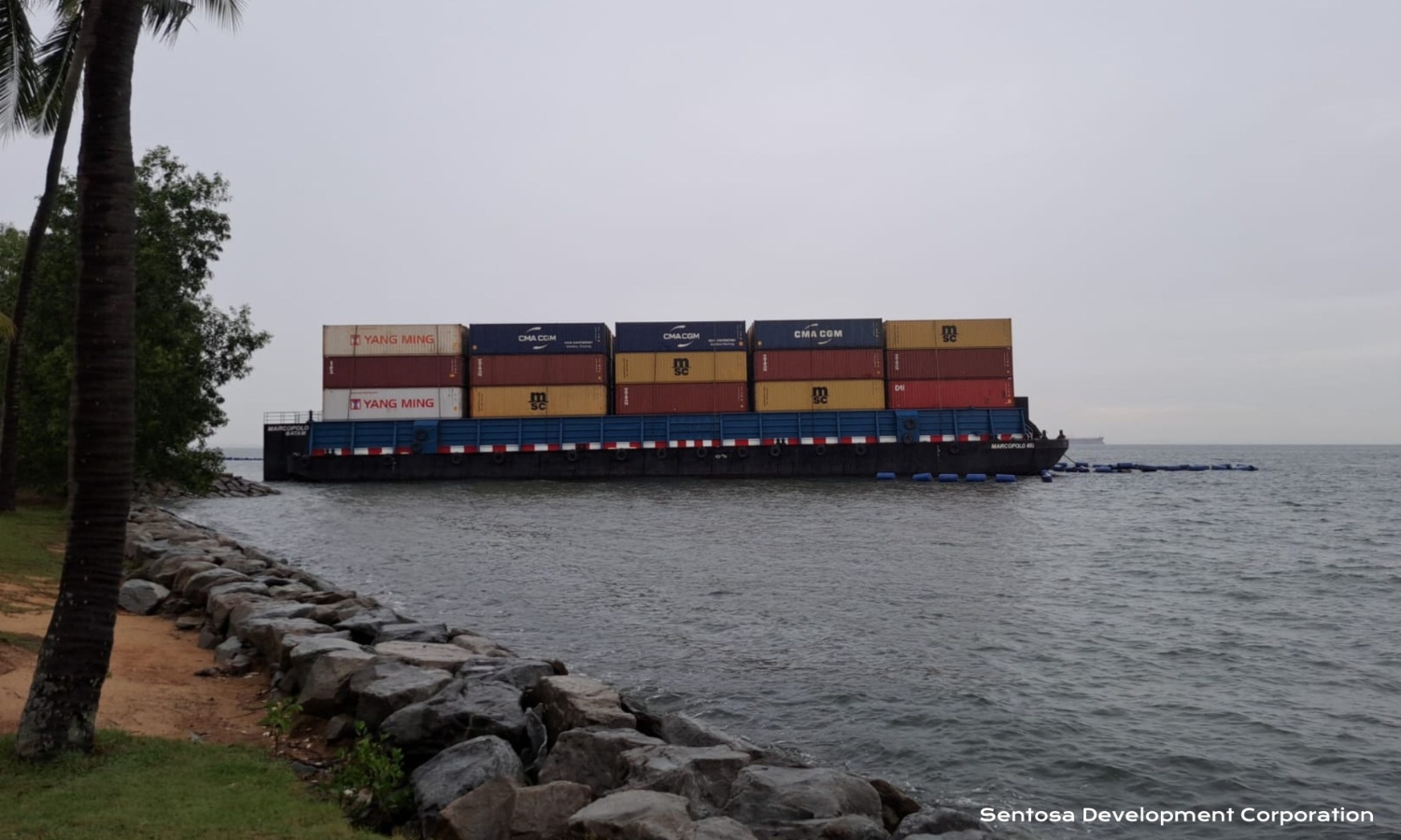 [已更新] MPA:驳船在新加坡圣淘沙丹戎海滩附近搁浅