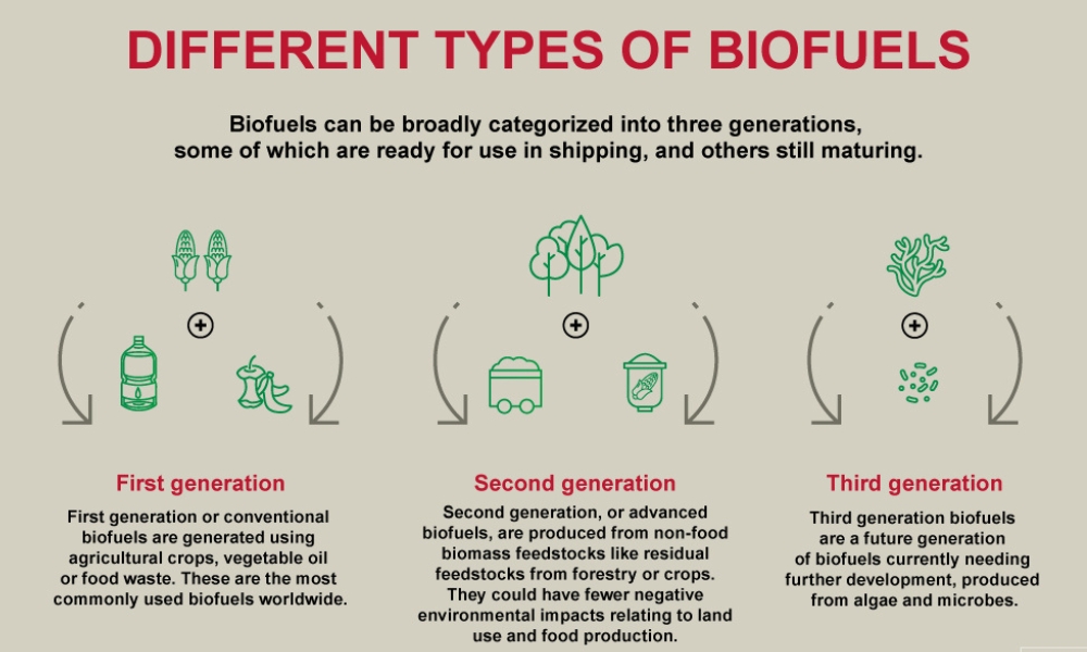 生物燃料大致可分为三代,其中一些已准备好用于航运业,而另一些则仍处于发展阶段: