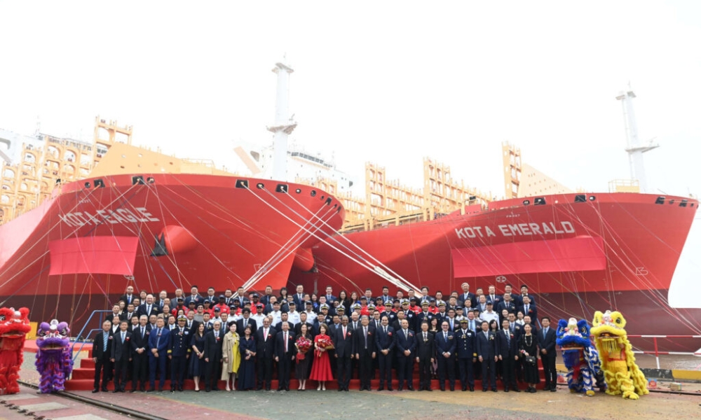 第一艘船“ Kota Eagle”(鹰城)由淡马锡控股公司董事兼首席执行长 Dilhan Pillay 先生的妻子Chan Su-Shan(曾素珊)女士完成命名,而第二艘船“Kota Emerald”(翆城)则由 PIL 执行主席 S.S. Teo 先生的妻子 Liza Teo (林秀儿)女士命名。
