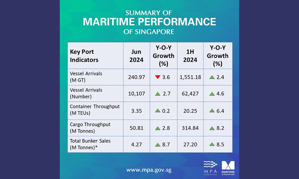 根据新加坡海事及港务管理局 (MPA) 的数据,2024 年 6 月新加坡港口的船用燃料销量同比增长了 8.7%。