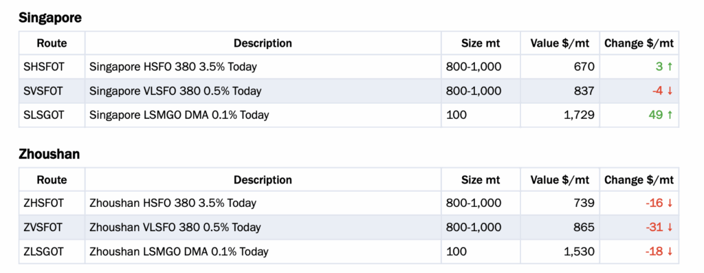 以下船用燃料报告由货运市场信息提供商波罗的海交易所供新加坡船用燃料资讯平台《满航》(Manifold Times)刊登: