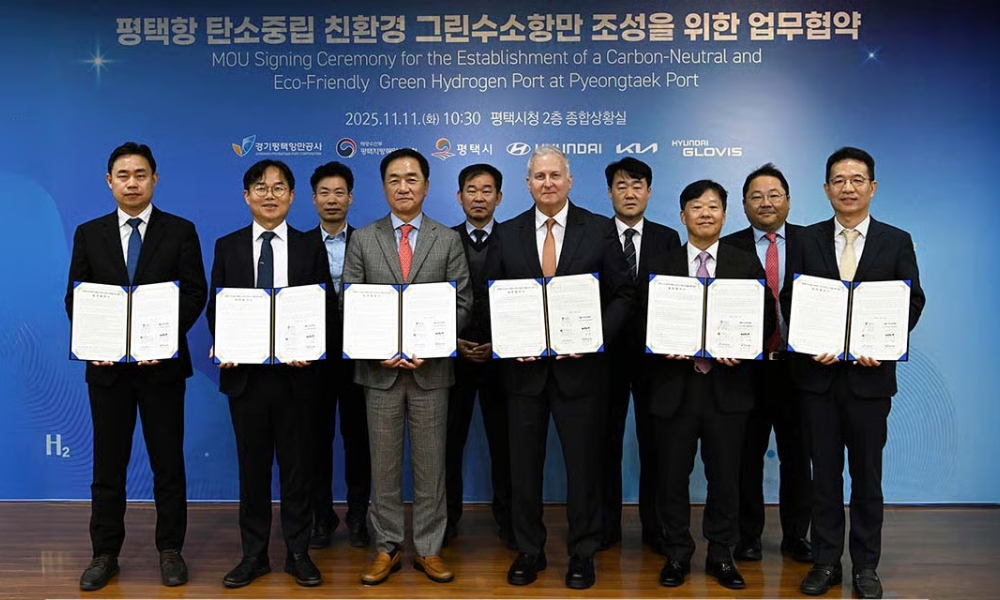 现代汽车集团(Hyundai Motor Group)于周二(11月11日)宣布与平泽市政府(Pyeongtaek City)及主要合作伙伴签署了多边谅解备忘录,以共同开发碳中和氢能港口项目,并其中包括加氢设施的建设规划。