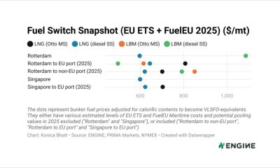 基于欧盟规定,B100 价格已再次低于 HSFO;同...