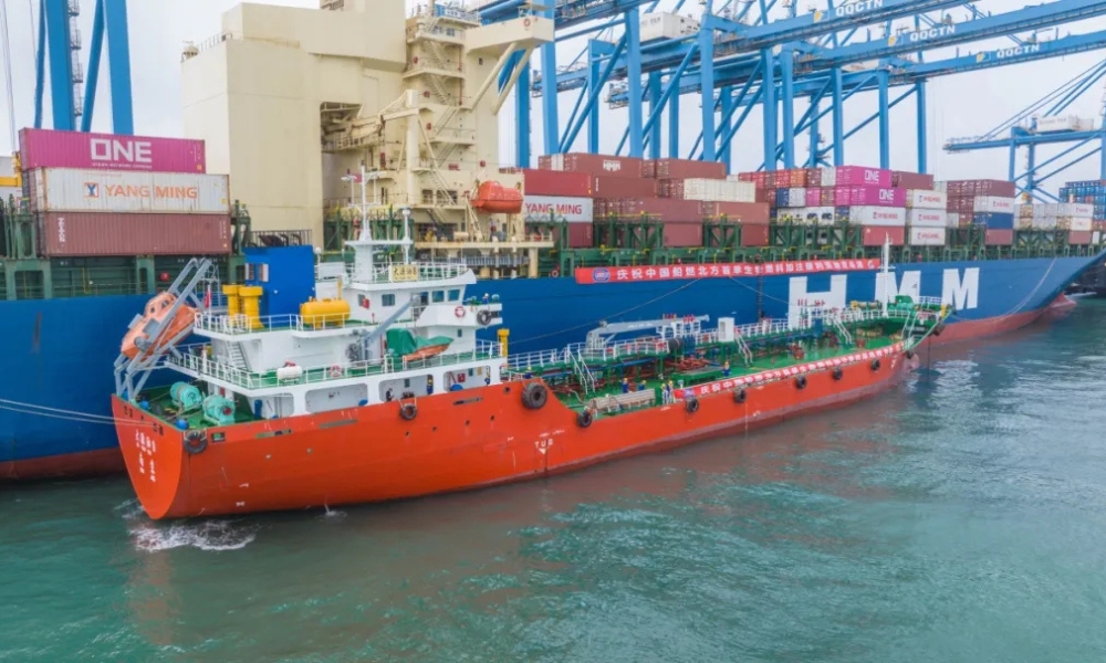 中国船燃旗下“大源油8”轮在青岛港为“HMM VAN...