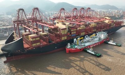 加注船“海洋石油302”在穿山港区成功为集装箱船“M...