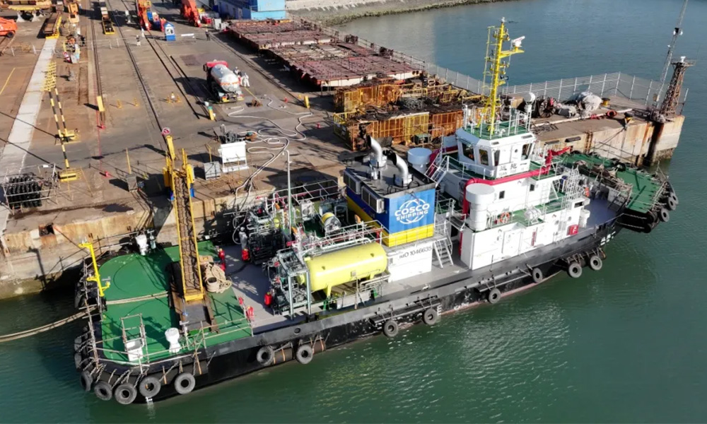 作业采用车对船方式进行,以确保首单船舶氨燃料加注作业...