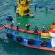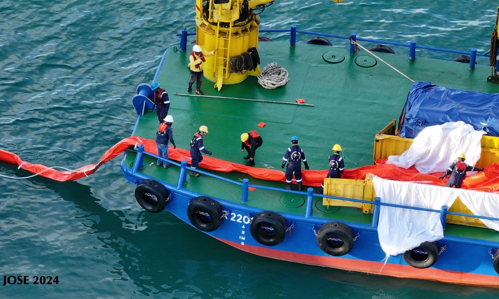 毛广岛和小毛广岛之间水道的油污清理工作正在进行中,并...