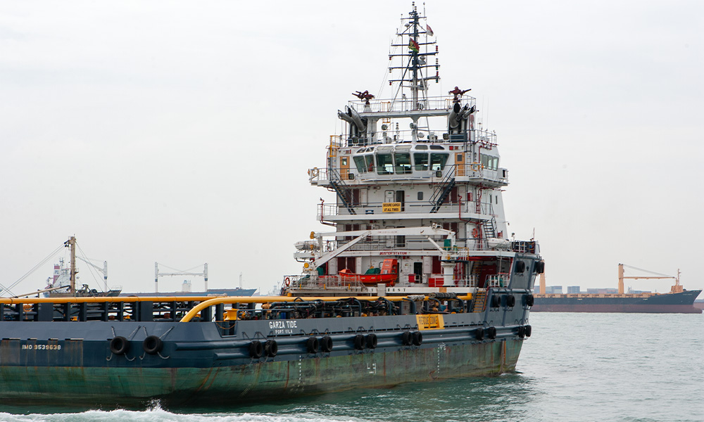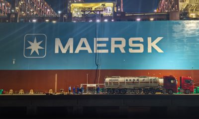 在舟山鑫亚船厂,中国石化燃料油公司成功向马士基大型集...
