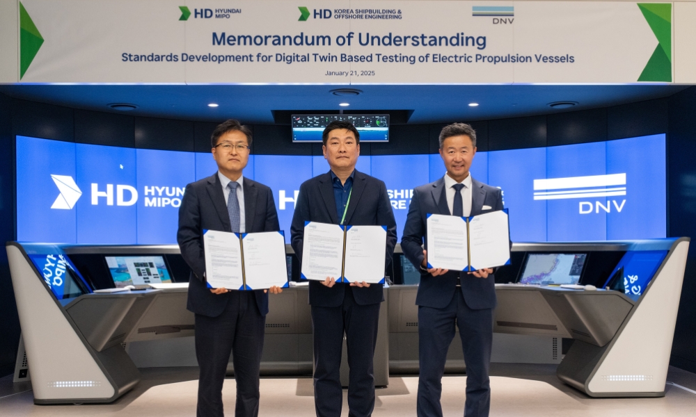 船级社 DNV 于周五 (1 月 24 日) 与 HD Hyundai Mipo (HMD) 和 HD Korea Shipbuilding & Offshore Engineering (KSOE) 签署了一份谅解备忘录 (MoU)。