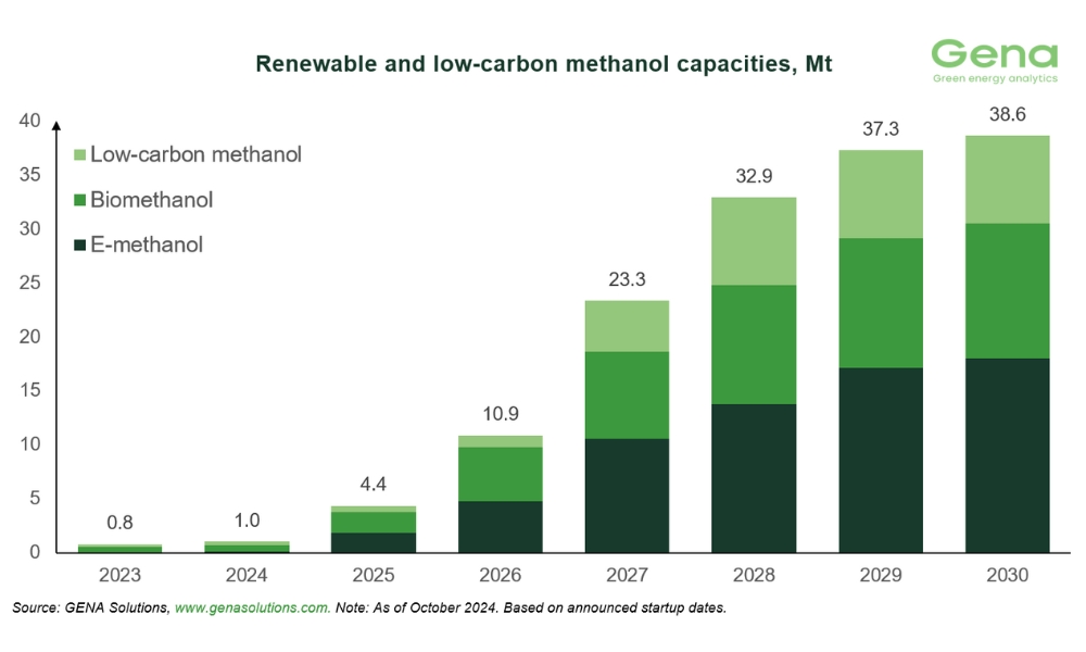GENA Solutions:可再生和低碳甲醇项目储备到 2030 年将从 3750 万吨增至 3860 万吨