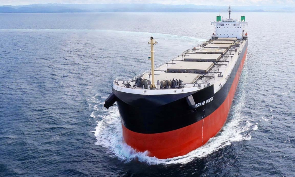 这艘名为“Brave Quest”的船舶总吨位达45,500吨,是由常石重工(宿务)建造的卡姆萨尔型散货船,其设计符合几内亚共和国卡姆萨尔港的最大尺寸限制。