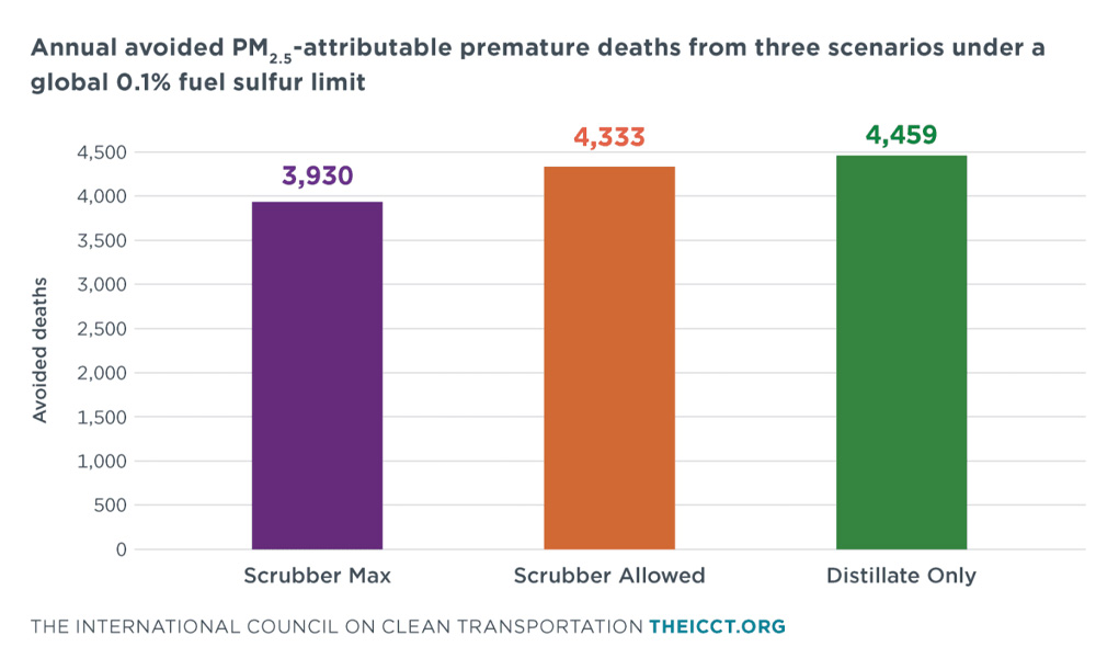 国际清洁交通委员会 (International Council on Clean Transportation,简称ICCT) 于周二(7 月 8 日)发布了一份政策简报,其中探讨了全球燃料最高允许硫含量若从 0.5% 进一步降低至 0.1% 后,将如何影响空气污染排放以及细颗粒物 (PM2.5) 造成的提早死亡事件。
