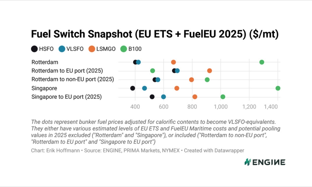 鹿特丹 B100 比 LSMGO 低近 400 美元...
