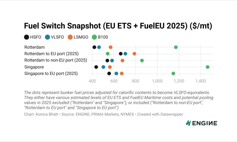 鹿特丹的 B100 比 VLSFO 便宜 160 美...