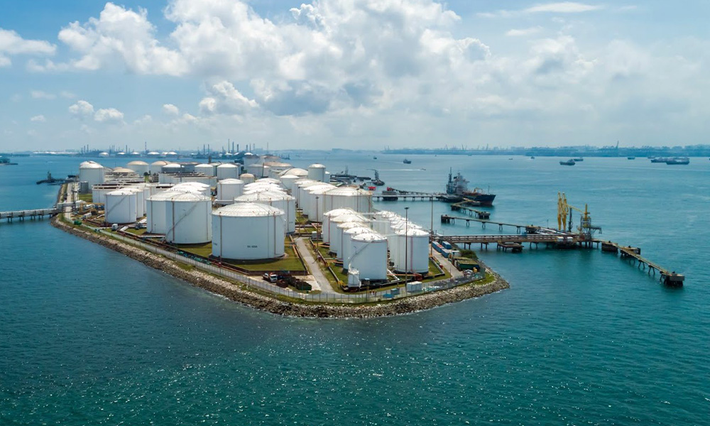 Vopak 的 Sebarok 码头靠近新加坡东部锚...