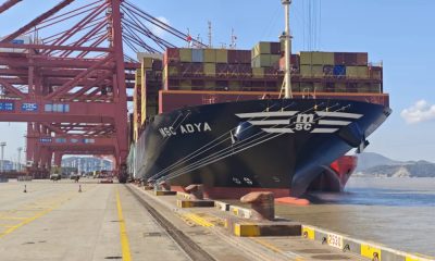 1月5日,加注船“海洋石油302”在宁波舟山港向集装...