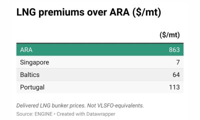 鹿特丹的 LNG 燃料价格因更高升水而上涨,而新加坡...