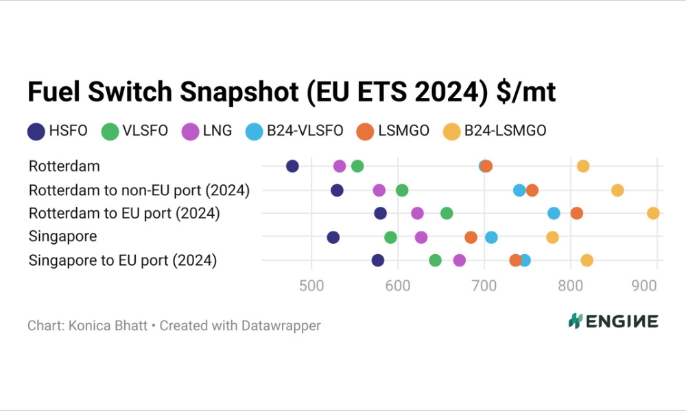 鹿特丹和新加坡的 VLSFO 比 LNG 便宜;新加...