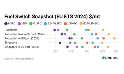 新加坡的 VLSFO 价格比 LNG 便宜;鹿特丹的...