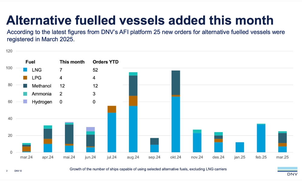 甲醇是该月最大的订单驱动因素,在 25 艘替代燃料船...