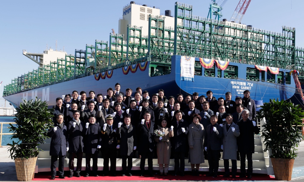 仪式在韩国蔚山HD现代重工造船厂举行; 该船是HMM...