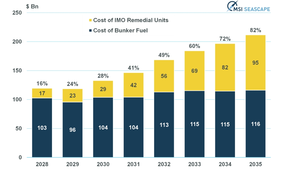 IMO的罚款金额将相当于在2035年的船队燃料成本上...