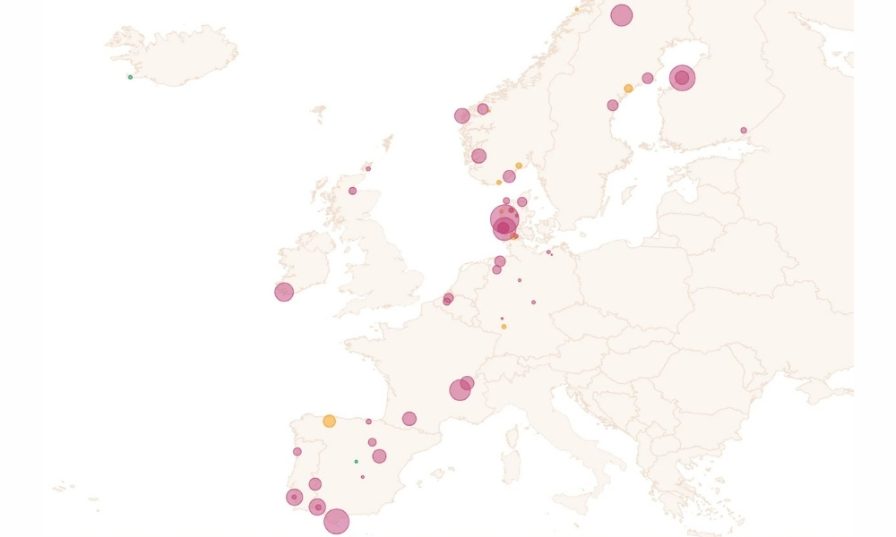 当下,仅丹麦一国,就占了 T&E统计的 61 个项目中所有计划氢气量的一半以上。但就指定用于航运业的燃料而言,西班牙仍处于领先地位,拥有三分之一的潜在燃料供应。此外,尽管英国海岸线很长,其项目却很少,同时,T&E 在意大利和希腊没有发现任何项目。