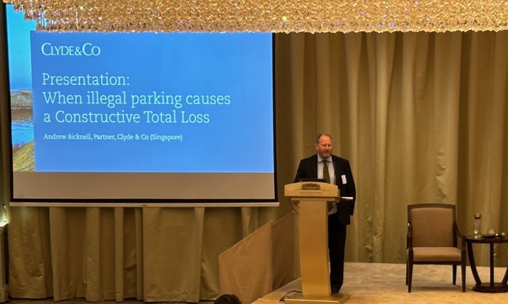 Bicknell 于周三 (5 月 29 日) 在克莱德律师事务所的 2024 年亚太会议上,向代表们介绍了他针对“非法停泊导致推定全损情况”的研究结果。